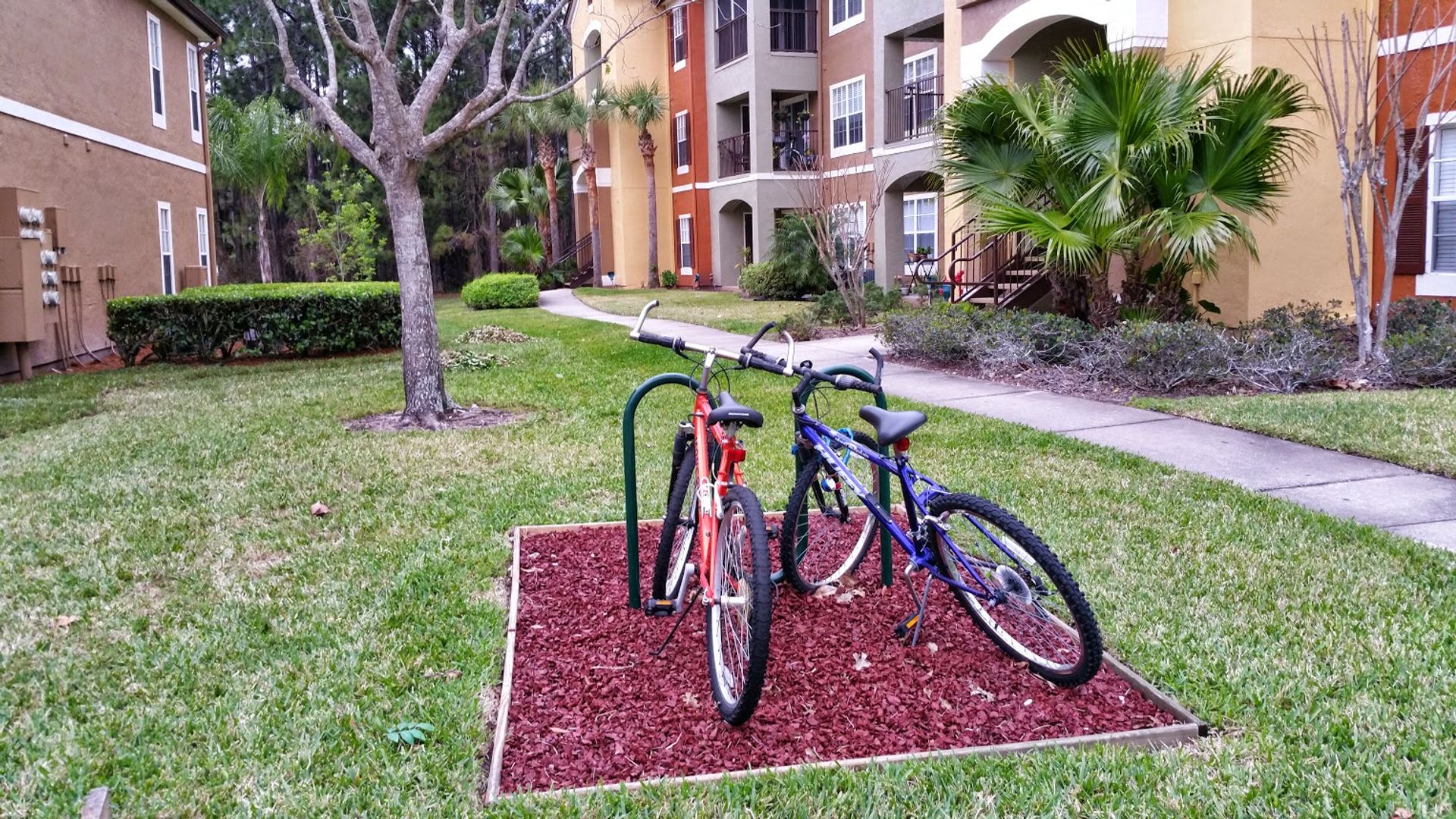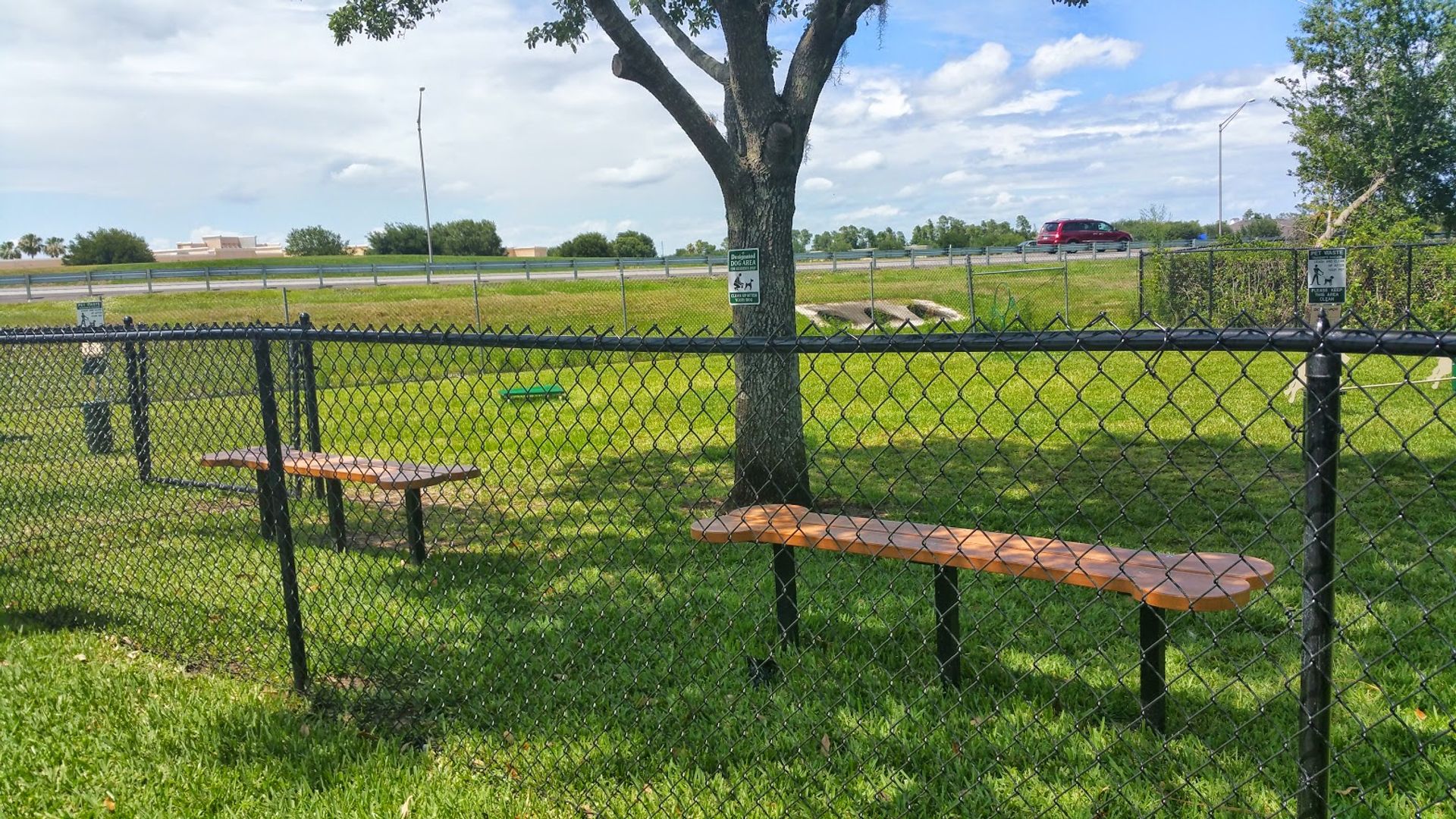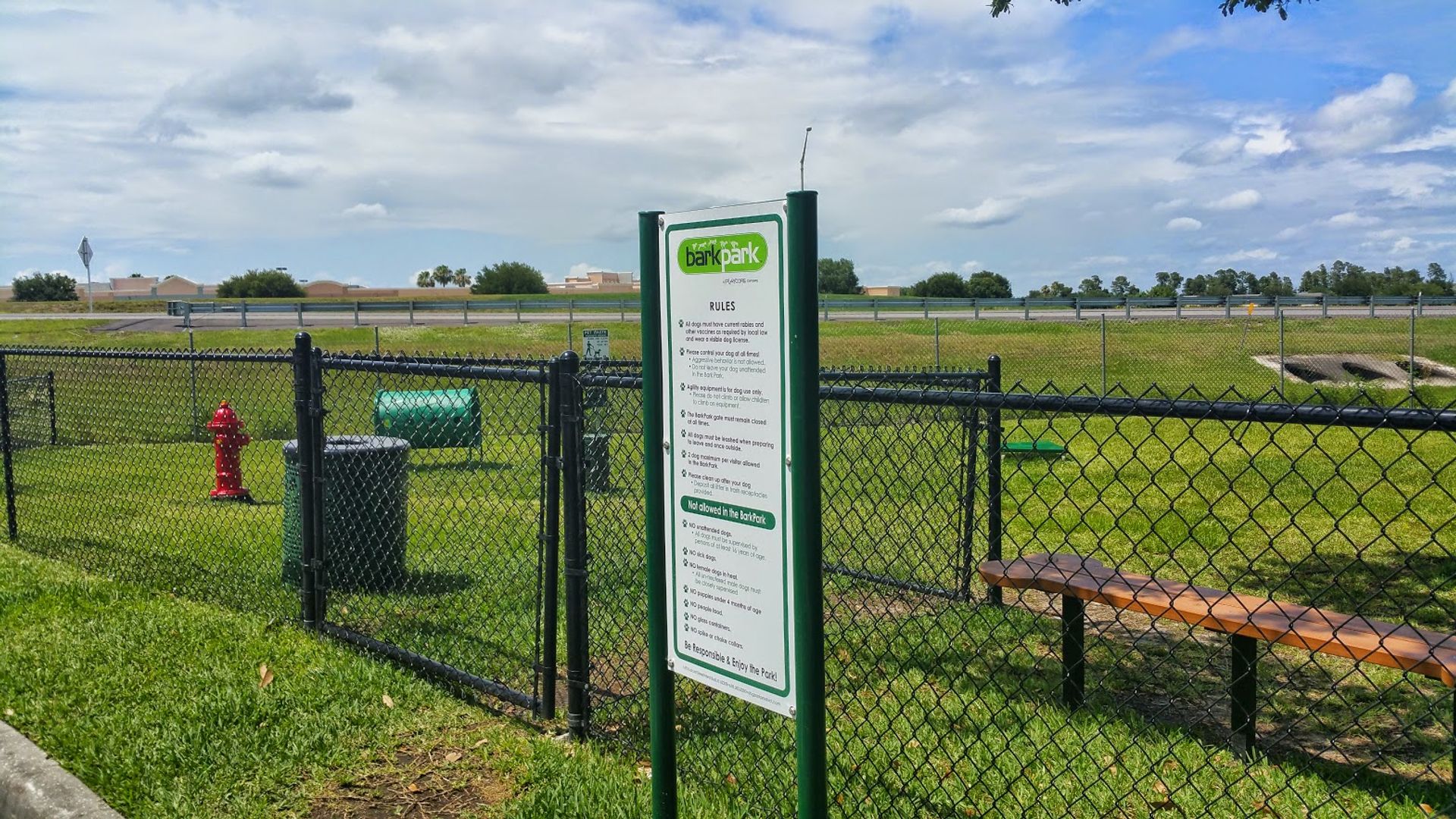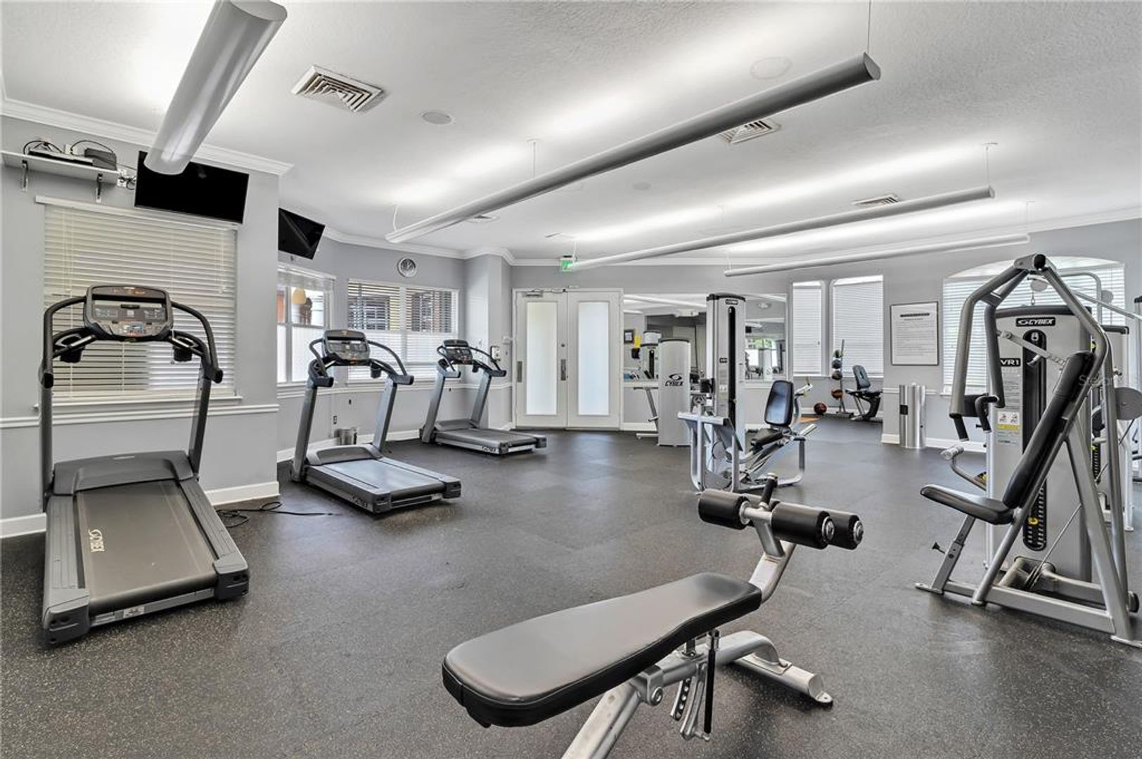 Fitness room, car wash area, and a dog walk path
